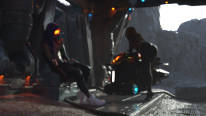 We're going to create a cool render featuring a woman delivering a crate to a male space cowboy, featuring Stonemason's The Rift scenery. With Val